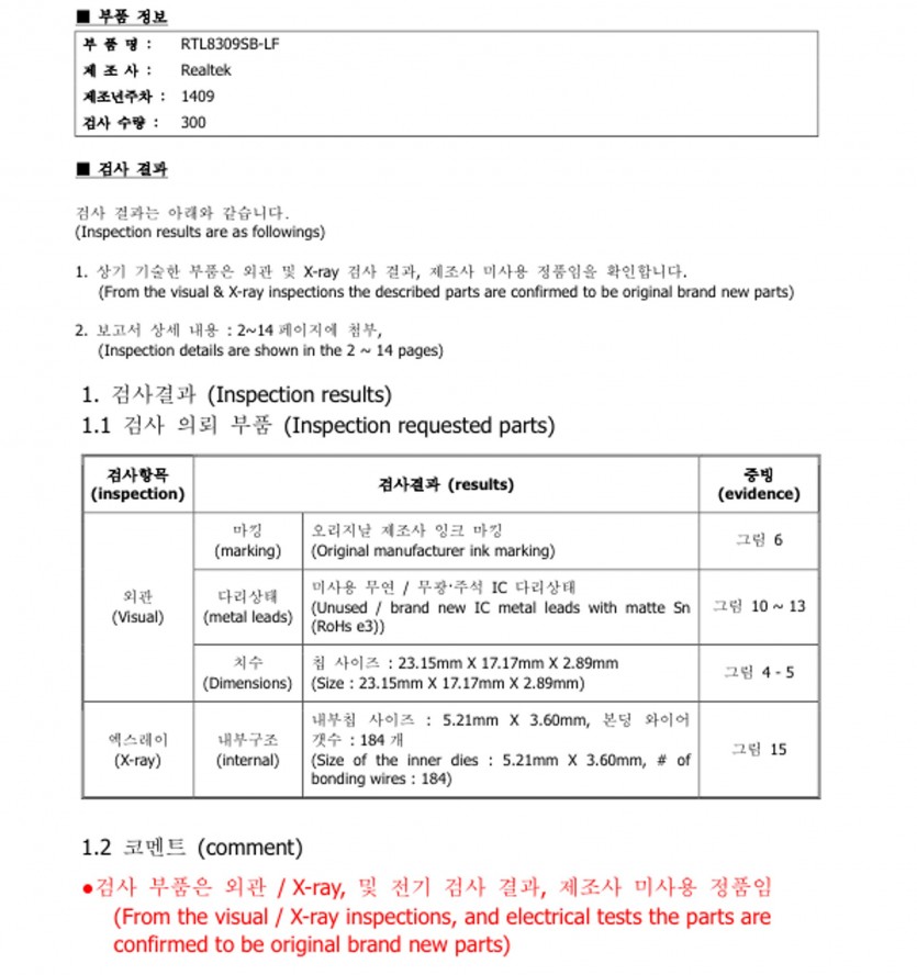 RTL8309SB-LF (X-RAY TEST) 분석 결과